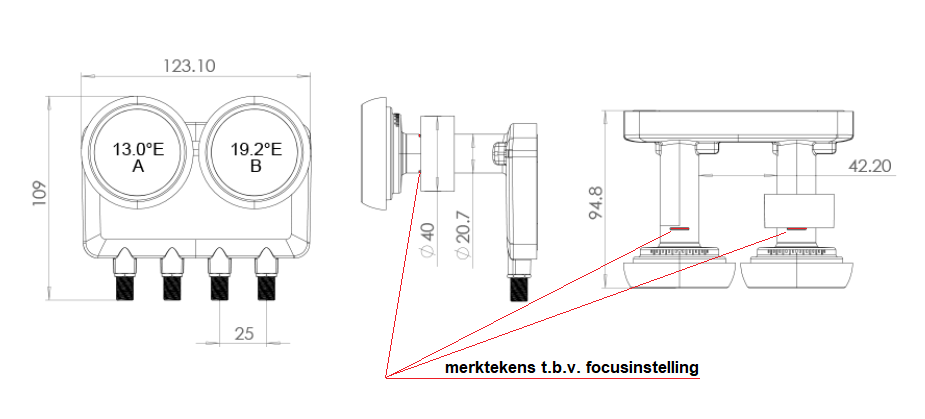 Sprietje Geplaatst: 20 december 2021 Geplaatst: 20 december 2021 (aangepast) Inverto heeft een nieuwe serie monoblokken uitgebracht. Het gaat om een 6° monoblock met 1 en 4 aansluitingen voor een schotel van 80cm en om een 4,3° monoblock met 2 aansluitingen voor een schotel van 80cm. Het gaat resp. om de monoblocken IDLM-SIM410-MNOO6-8PX, IDLM-QDM410-MNOO6-8PX en de IDLM-TNM210-43F80-OPX. Op deze monoblocken zijn markeringsstreepjes aangebracht die aangeven in welke positie het block t.o.v. de schotel gezet moet worden. Hiermee wordt aangegeven wanneer het focuspunt van de lnb in het brandpunt van de schotel staat. Uiteraard moet de verloopring wel netjes in het midden van de lnb-klem staan. Ik heb niet eerder gezien dat er een fabrikant is die een focusmarkering op een lnb heeft aangebracht. De vraag is echter wat deze markering waard is. Als richtlijn klopt deze markering wel. Zelf geef ik aan hoe een multifeed schotel afgesteld moet worden zonder meetapparatuur, dat de afstand tussen de kop en de klem 5-6mm moet zijn. Dat komt aardig overeen wat Inverto hier ook aan geeft maar het beste is toch om met de signaalmeter te kijken wanneer er het beste signaal wordt verkregen. Immers, er is nergens in protocollen vastgelegd, waar de lnb-klem van een schotel zich precies moet bevinden. Dat doet elke schotelfabrikant op zijn eigen manier waarbij hij er van uit gaat dat het focuspunt van de feedhorn op het brandpunt van de schotel is in te stellen. Bij alle lnb's is de hals immers langer dan de dikte van de lnb-klem die standaard 20mm is. 20 december 2021 aangepast door Sprietje afbeelding toegevoegd