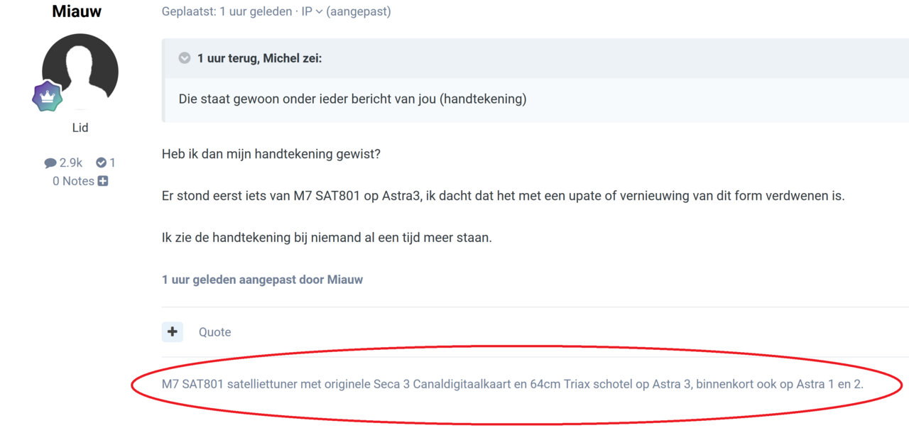 Beheerder Michel Geplaatst: 24 maart 2022 Auteur Beheerder Geplaatst: 24 maart 2022 23 uren geleden, moonchild zei: Herziening van de reclameregels. Nu moet je vaak lang zoeken om een shop te vinden die een artikel op voorrad heeft en het na een beschikbare betaling ook nog wil leveren/opsturen. Zijn er nog wel satshops in nl over, vroeger op elke hoek. Dus toen regulering hard nodig, maar nu? Een soort te koop gevraagd forum voor nieuwe artikelen. Je vraagt om een VU 8k Elite se en shops die kunnen leveren doen een aanbod. Shop betaald 10 euro/maand om in de shop groep te vallen. Ik roep ook maar wat Dat is diverse keren geprobeerd, maar dan zijn er direct diverse satshops actief om via de diverse accounts reclame voor zichzelf te maken. Ik zou met met alle middelen die het internet tegenwoordig biedt, niet weten wat het plaatsen van een link naar een winkel op dit forum daar nog aan toe kan voegen. In mijn ogen heeft het meer nadelen dan voordelen. 8 uren geleden, Old Satterhand zei: Mijn wens is een betere moderatie op dit board. Denk aan: Splitsen van topics die zijn gekaapt door een 2e of zelfs 3e forumlid. Zeer verwarrend. Topics over precies hetzelfde onderwerp samenvoegen. En openingposts die vrijwel geen informatie geven over de gebruikte setup dienen onmiddellijk te worden verwijderd. Zaken waar ik me persoonlijk aan erger: Forumleden die alleen maar topics openen waarbij ze de gegeven oplossingen slinks omzeilen om vervolgens zelf met de oplossing komen, dienen te worden vermaand! Forumleden die oplossingen van andere leden kapen door snel een posting met dezelfde oplossing te plaatsen: een ban voor minstens 2 maanden. Zo, dat zal ze leren. Dat geldt voor mij ook, maar de oplossing zit bij een aanpassing van het gedrag van bezoekers. Als wij dat moeten 'oplossen' betekend dat streng modereren en als gevolg daarvan veel ontevreden leden en voor ons een hele hoop werk, ellendige reactie en verwijten. Je hebt altijd de mogelijkheid om eventueel zelf moderator te worden of zelf een overtreding te rapporteren. 2 uren geleden, Psychosammie zei: Misschien kan je kortdurende forums lanceren over een actueel thema. Als het forum niet meer actueel is laat je het nog even staan en daarna alles in de prullenbak. Bijvoorbeeld een sport toernooi. Dat kan toch gewoon een in topic in het 'off topic' forum, of denk je dat er over het WK voetbak zoveel verschillende topics zullen komen dat dit een (al dan niet tijdelijk) extra forum vereist? Een optie voor tijdelijke forums biedt deze forum software niet, dus dat is dan allemaal handwerk. Niet haalbaar. Suggesties voor nieuwe permanente forums zijn altijd welkom. Gebruik je een advertentie blocker? Sluit onze website dan uit. Zonder advertenties kan deze site niet voortbestaan.