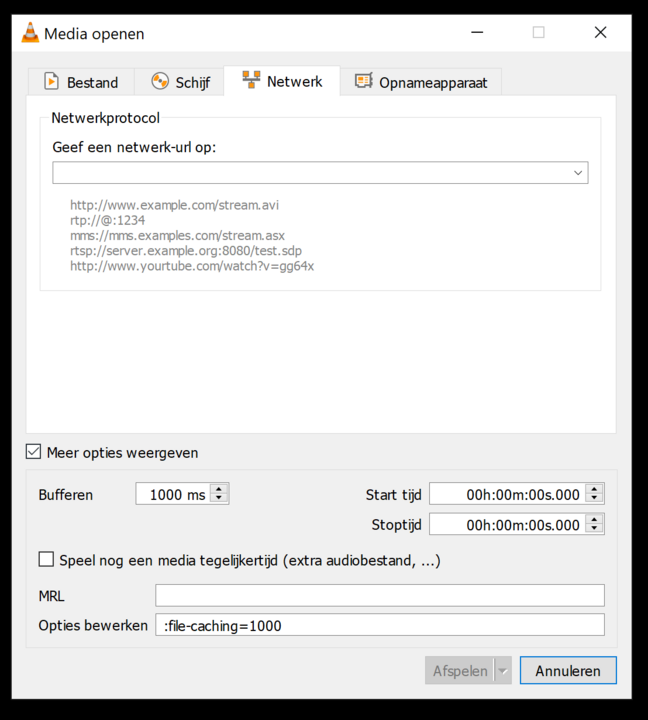 rick8245 Geplaatst: 9 oktober 2022 Auteur Geplaatst: 9 oktober 2022 Ik heb in vlc player gedaan:\ Media -> netwerk stream openen -> meer opties weergeven Daar zie ik niet de optie ipadres wel : geef netwerk url op maar als ik daar de hele url inzet inclusief portnummer gebeurt er niets Zit ik in het juiste tabblad ???