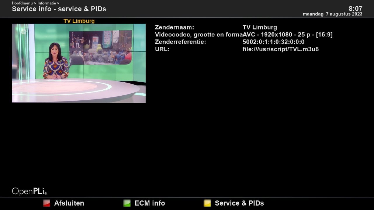 Kabeltje87 Geplaatst: 26 oktober 2022 Geplaatst: 26 oktober 2022 (aangepast) Op 15-10-2022 om 23:52, on1bes zei: @Kabelje87: ROB TV en TV Oost moeten wel service 4097 zijn. De rest werkt. Idd de streams werken nu ook met 4097. De serviceapp is niet meer nodig voor deze kanalen. Trouwens als deze URL's gebruikt heb je rechtstreeks de 1080P stream: #SERVICE 4097:0:1:1:0:32:0:0:0:3:https%3a//live.zendzend.com/streams/29375_395474/1080n/index.m3u8:TV Limburg #SERVICE 4097:0:1:2:0:32:0:0:0:3:https%3a//live.zendzend.com/streams/29375_107244/1080n/index.m3u8:ATV #SERVICE 4097:0:1:3:0:32:0:0:0:3:https%3a//live.zendzend.com/streams/29375_399410/1080n/index.m3u8:TV Oost #SERVICE 4097:0:1:9:0:32:0:0:0:3:https%3a//live.zendzend.com/streams/29375_395477/1080n/index.m3u8:ROB TV Edit: en voor degenen met een iets slechtere internet verbinding kun je 1080n/index.m3u8 vervangen door 720n/index.m3u8 26 oktober 2022 aangepast door Kabeltje87 ~~Rytec Team~~ Mutant HD-2400 / OpenPli en Maxytec-Multibox SE / OpenPli (mediaspeler) VU+ Duo / OpenPli en Synology NAS *All Rytec EPG POWERED*