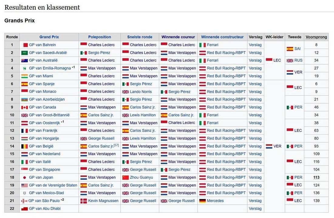 D.Quijote Geplaatst: 15 november 2022 Geplaatst: 15 november 2022 (aangepast) Als ik hier kijk staan de overwinningen gelijk. Of zie ik het verkeerd.? https://nl.motorsport.com/f1/standings/2022/ 15 november 2022 aangepast door D.Quijote M7 sat 801, Amiko HD 8155 en HD 8165 + combo
