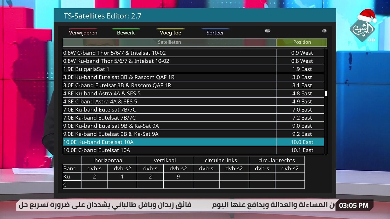 Alex1970 Geplaatst: 13 december 2022 Geplaatst: 13 december 2022 2. Sorry verkeerde link. Vanavond pas tijd voor de juiste screenshot. 3. Uitleggen denk ik wel, de code zelf niet. Maar die is toch steeds anders bij elke nieuwe feed. Zelf even naar zoeken in het sat-universum. 4. VLC en Kodi zijn m.i. niet hetzelfde. Ik gebruik VLC en soms Potplayer. Dreambox DM920: 2x Triple tuner (2x DVB-S2X multistream + DVB-C/T2) OpenPLi 9 Xtrend ET10000: 1x DVB-S2, 2x DVB-C/T2, IPTV OpenPLi 9 VU+ Duo / Dreambox DM800 / TBS 5925 Channel Master 180cm offset: 39.0°E-37.6°W, Channel Master 120cm offset: 23.5°E-8°W SAB 97 schotel 45.1°E-60°E, 80cm vast: 28.2°E/23.5°E/19.2°E/13°E | DVB-T/DAB: VHFIII/UHF combi-antenne op zolder.