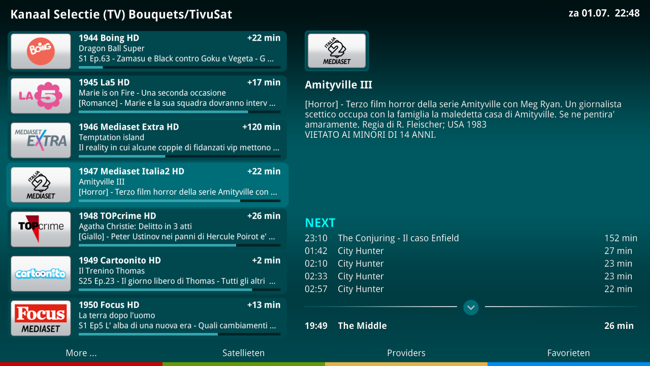 Mimisiku Geplaatst: 10 mei 2023 Geplaatst: 10 mei 2023 Recent is de Beta van het ‘Universal Image’ publiek geworden. Dit image werkt uitsluitend op de Armlogic bestuurde Dreamboxen. Veel wijzigingen zitten ‘onder de motorkap’. Ondersteuning voor WHQL Skins en streaming mogelijkheden zijn uiterlijk de meest zichtbare kenmerken.. Uiteraard getest op mijn DM-One UHD. Gezien mijn Multiboot systeem moest er wel wat voorbereid worden…. Het nieuwe Universal-Image kan niet worden gestart vanuit Alan-Turing (Multiboot) als DreamOS 2.6 in Flash start (kernel probleem). Dus eerst de kale DM-One UHD flashen met het Universal-Image. Daarna de 128 GB SD card in de DM-One UHD, Gutemine Feed 3 installeren en van daaruit Alan-Turing. Box herstarten en Alan-Turing starten. Zolang je de SD kaart niet herpartioneert blijven je opgeslagen images beschikbaar. Dan via Alan-Turing de ‘oude’ DreamOS 2.6 die in de flash zat als MultiBoot image toevoegen… Box even in Standby en de USB HDD stick als laatste aansluiten. Na een herstart is dan de oude situatie hersteld maar nu met het Universal-Image als startimage in de flash. De meeste standaard functies getest en nog geen vastloper gehad. Het nieuwe WHQL skin geïnstalleerd. Ziet er helemaal niet verkeerd uit. De picons staan in de afgeschermde ‘data’ partitie dus die raken met dit soort acties niet verloren… Een paar screenshots van het nieuwe image 1 Afscheid….. Nog een paar maandjes te gaan…