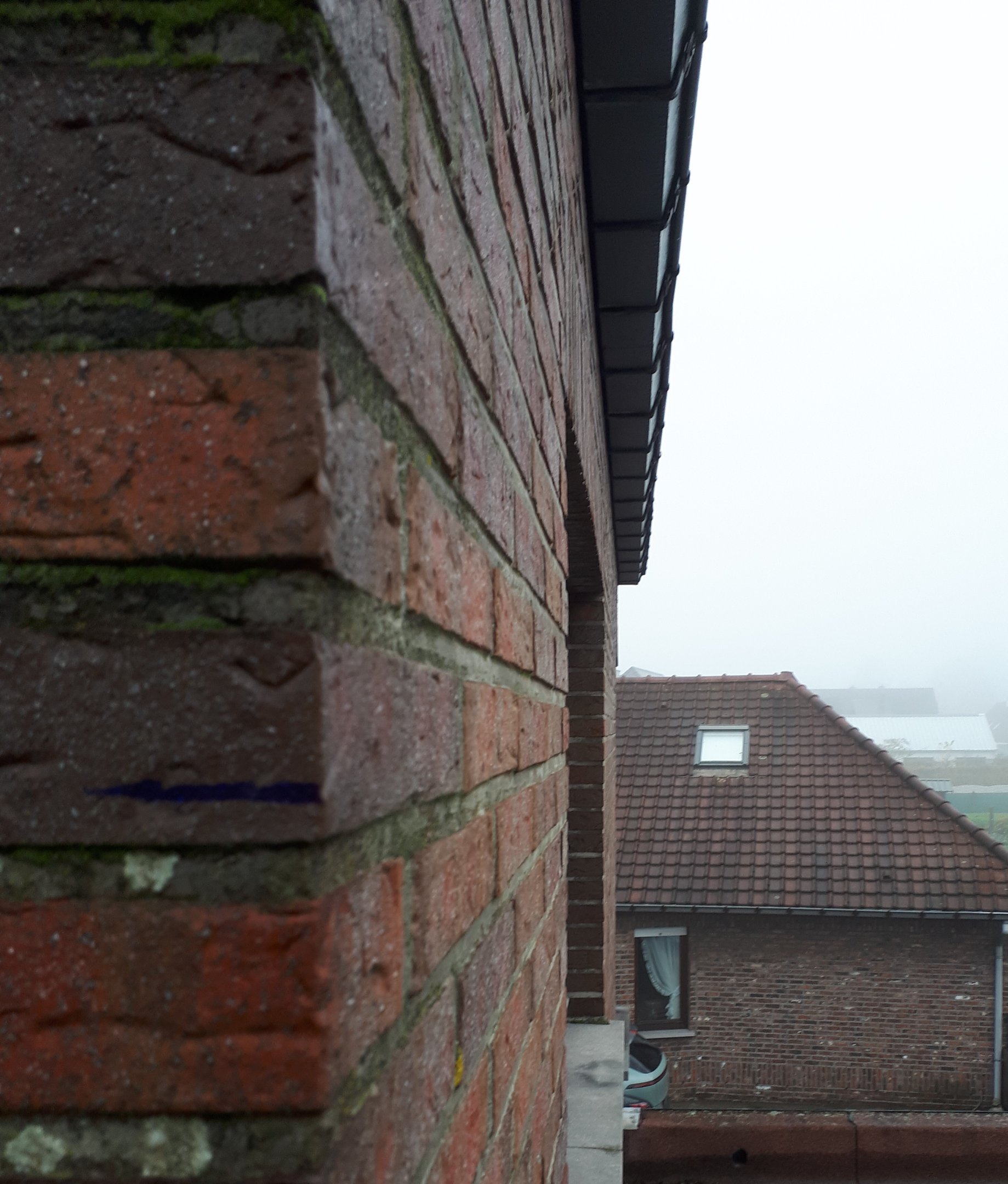 BrunoVP Geplaatst: 22 november 2023 Auteur Geplaatst: 22 november 2023 De blauwe streep geeft ongeveer de hoogte van het tegenoverliggende dak weer. 90 cm onder de dakgoot waar ik de muurbeugel zou kunnen plaatsen. Hoger mag ik niet echt gaan. Er zijn herstellingswerken voorzien.
