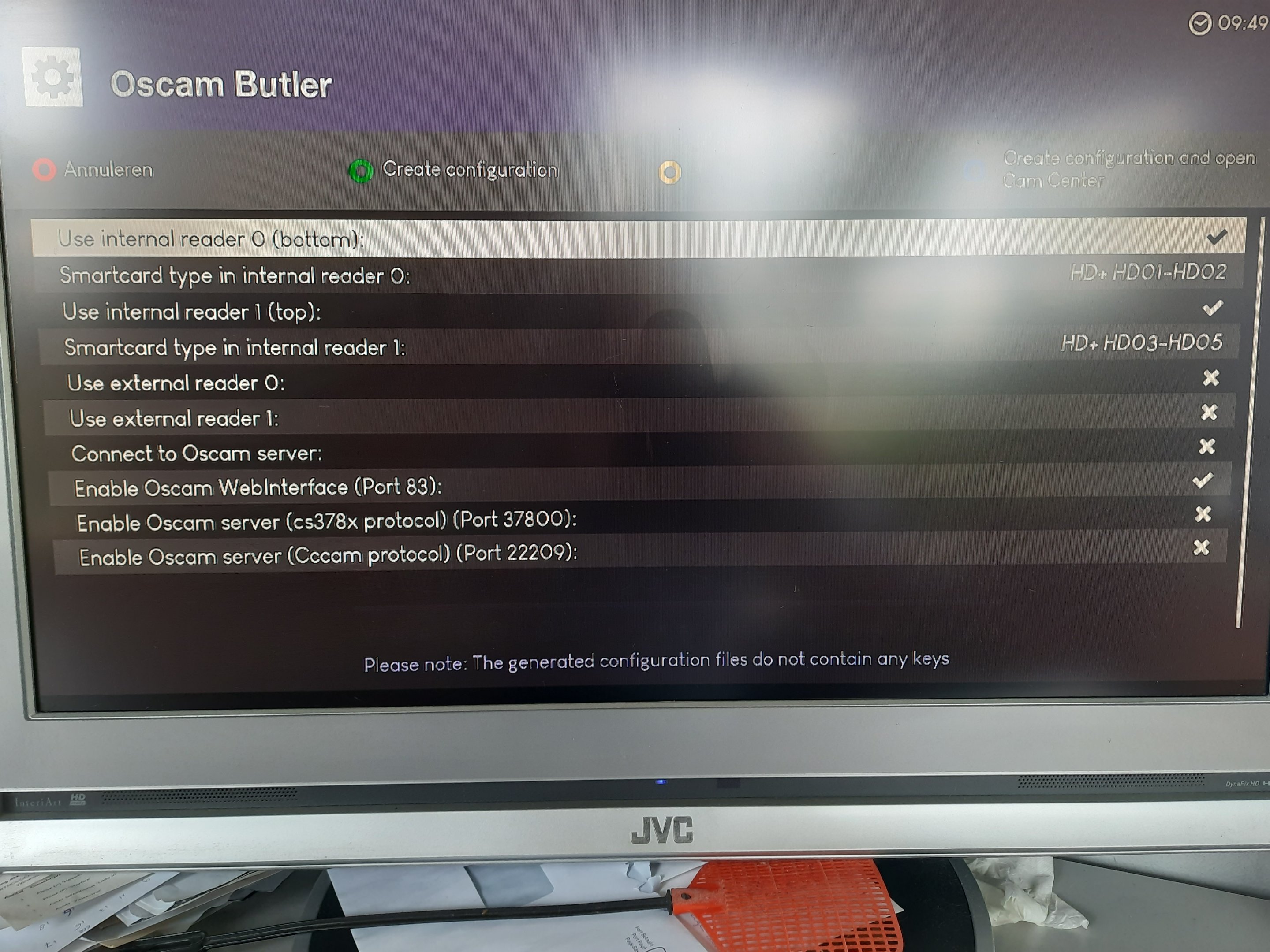 FGH77 Geplaatst: 4 april 2024 Auteur Geplaatst: 4 april 2024 (aangepast) 7 uren geleden, Tonskidutch zei: oscam kun je installeren en dan is de configuratie LEEG dus de configuratie moet je zelf aanmaken en/of van pC naar receiver copieren zelf aanmaken in VTI gaat via de Oscam Butler plugin die je dus extra moet inladen uit de feed Dit is wat ik te zien krijg als ik de Oscan Butler plugin open: Ik heb ook een foto gemaakt van de instellingen van de 2 tuners. Zijn er nog meer instellingen die van belang zijn om gefotografeerd te worden? Laatst deed ik de Solo2 aan vanuit de standby stand en ook toen bleef alles zwart en vastzitten/. 4 april 2024 aangepast door FGH77