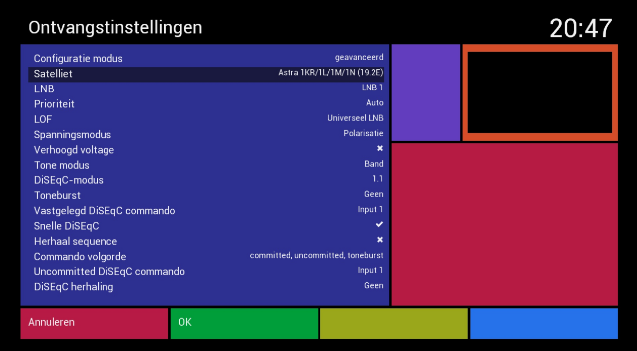 Mojo Geplaatst: 23 december 2024 Geplaatst: 23 december 2024 (aangepast) 16 minuten geleden, Boxertall zei: Deze is gemaakt met PLI, Satfinder ben mijzelf niet bewust dat je daar iets kunt instellen. Dat poorten omdraaien, over welke poorten heb je het? Met poorten bedoel ik die op de diseqc switch. Je kunt in dat menu kiezen voor voorgeprogrameerde transponder en zo een aantal transponders checken. Zorg dat er ook een actuele satellites.xml in zit satellites.xml(1).zip 23 december 2024 aangepast door Mojo You know when you've been shagged. I like receivers who give me pleasure.