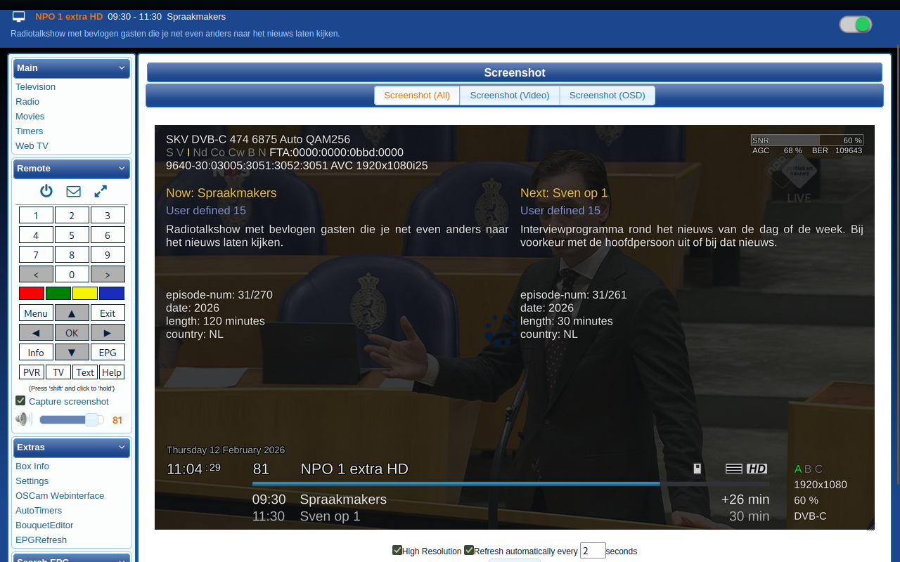 kees321 Geplaatst: 1 uur geleden Geplaatst: 1 uur geleden Onze 2 stuks Vu+ ultimo ("oud", niet-4k) werken uitstekend. Maar wat mij opvalt, de hoge BER op DVB-C, op alle kanalen nagenoeg even hoog. Iemand een idee hoe dat kan ? En dan toch geen ontvangst problemen. Voor de leut wat schermafdrukken. Van DVB-C en DVB-T, daar bij geen fouten, BER = 0
